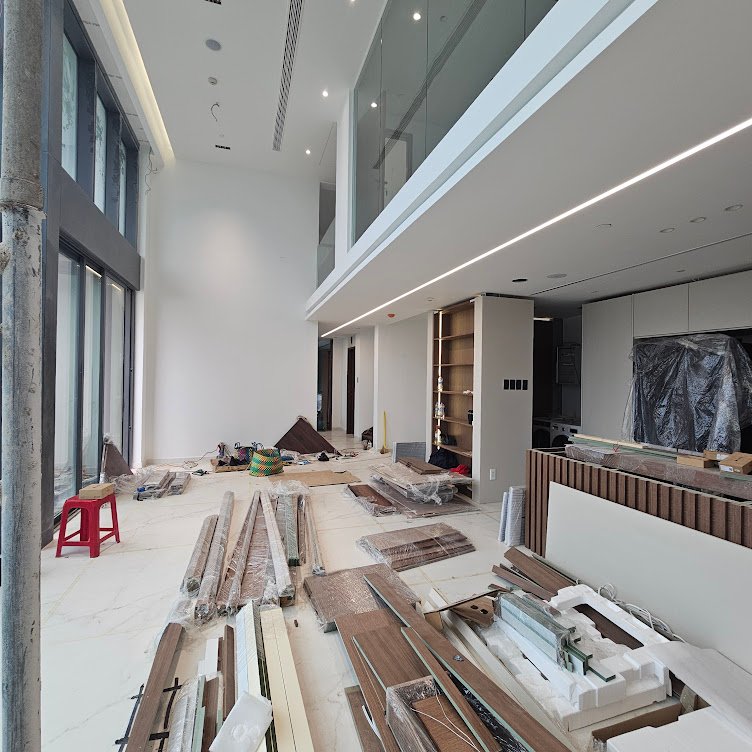 Yêu cầu gia chủ: Thiết kế hệ thống thông minh “vô hình”, tích hợp sâu vào nội dung luxury mà không làm thay đổi thẩm mỹ nguyên bản của căn hộ.