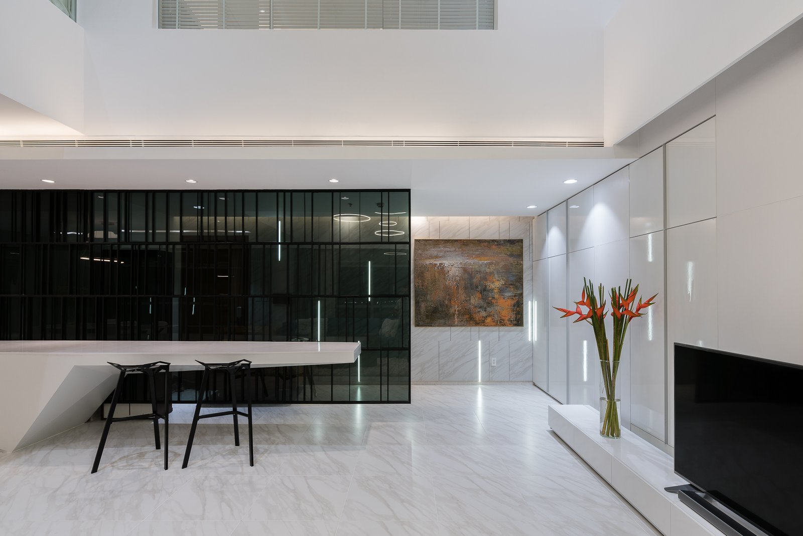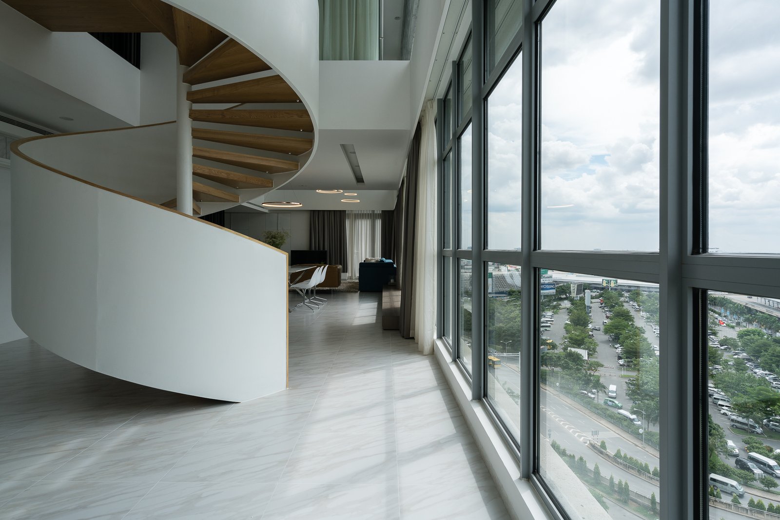 Hệ rèm thông tầng đặc thù: Trang bị động cơ rèm công suất lớn, vận hành êm ái cho hệ kính thông tầng cao hơn 6m, đảm bảo khả năng chắn nắng và giữ gìn sự riêng tư chỉ với một điểm chạm.