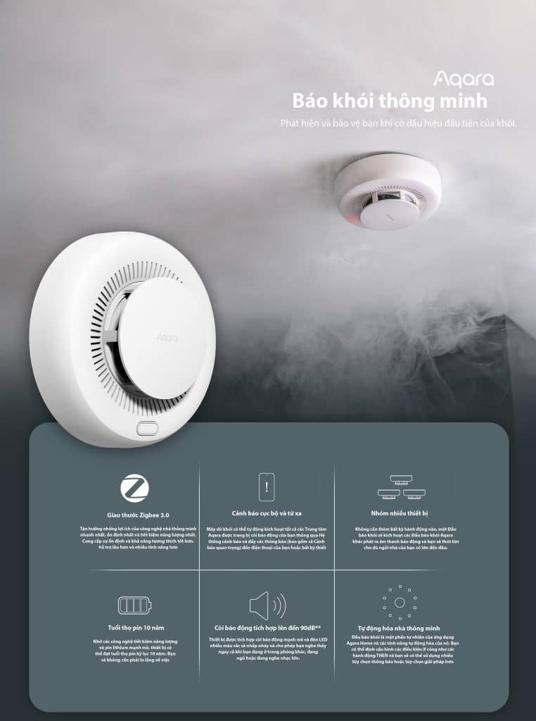 Cảm biến khói Aqara giúp bạn tránh được những tình huống không mong muốn. Thiết bị sẽ cảnh báo cho bạn trong những trường hợp nguy hiểm. Tự động nhận biết có khói với độ nhạy và độ chính xác cao, hỗ trợ liên kết cả hai hệ thống Homekit và Aqara,… Chắc chắn sẽ là trang bị hợp lý cho mọi không gian, giúp ta phát hiện được các sự cố cháy nổ kịp thời và nhanh chóng hơn.’