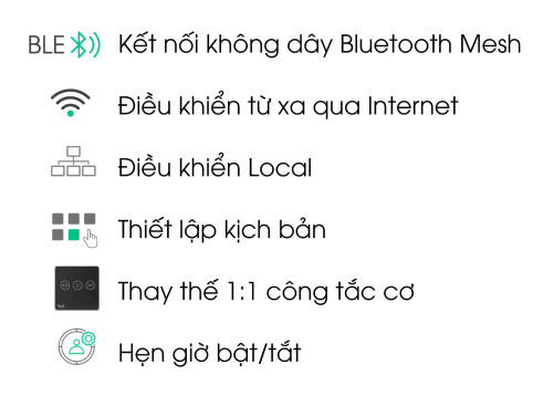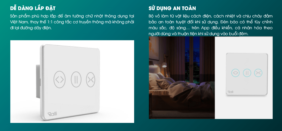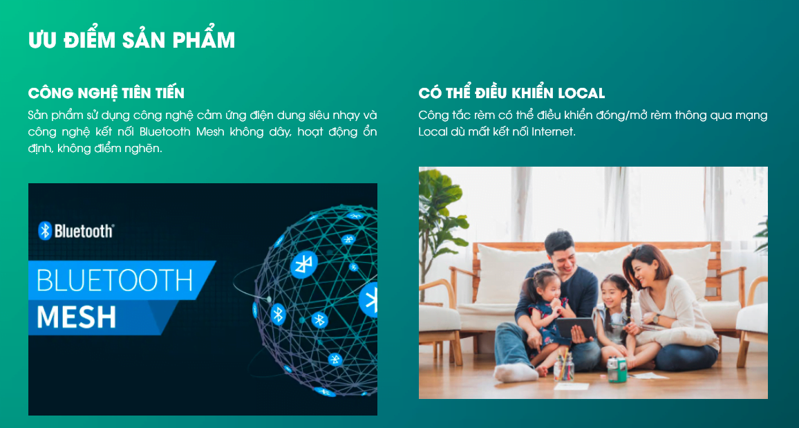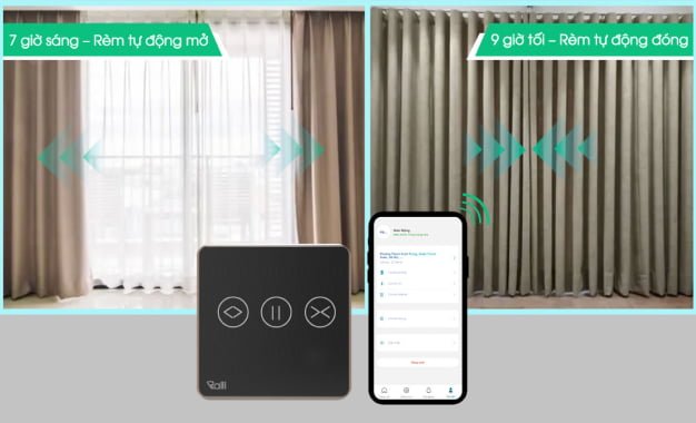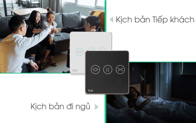 Với công tắc điều khiển rèm, bạn có thể điều khiển trực tiếp bằng 1 chạm trên ngay công tắc, điều khiển từ xa bằng smartphone mà không còn bận tâm khi ra khỏi nhà quên chưa đóng rèm hay điều khiển bằng giọng nói khi không rảnh tay điều khiển rèm.