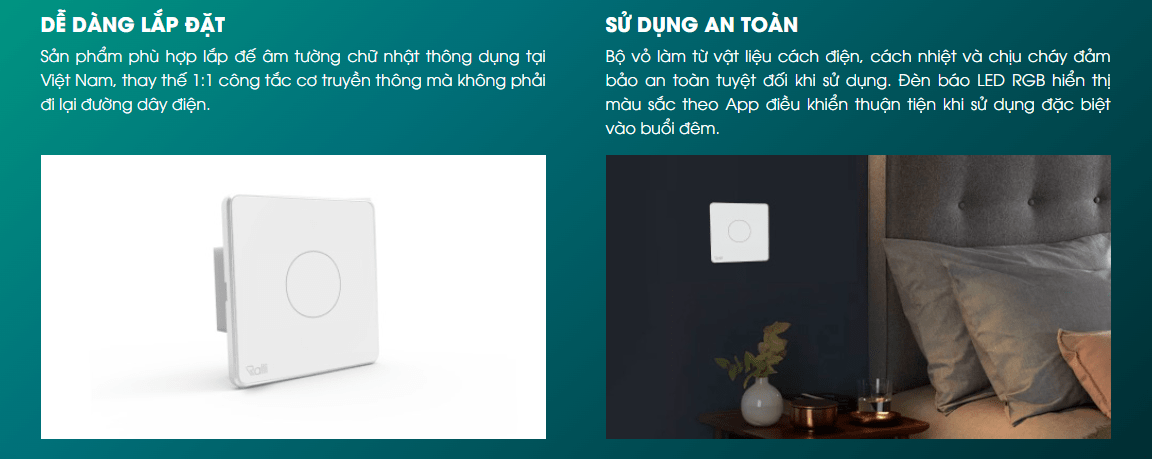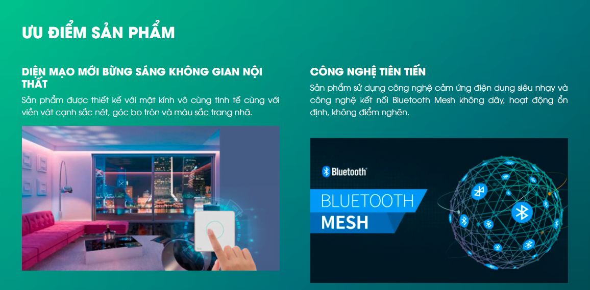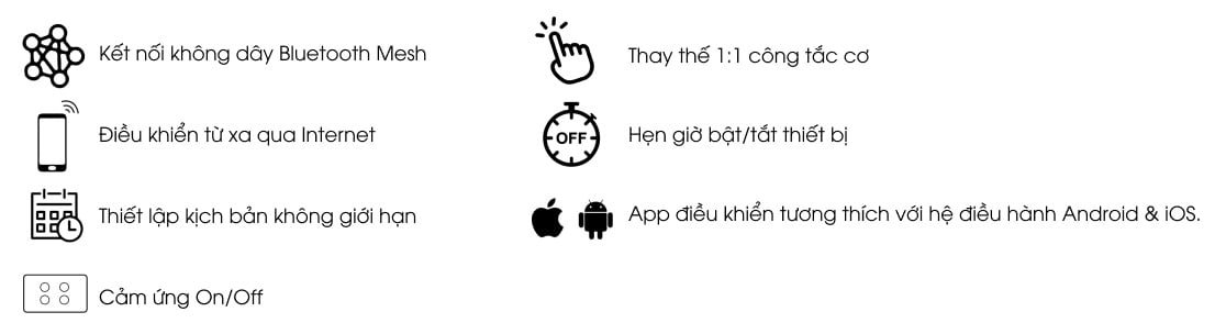 Với công tắc cảm ứng thông minh, bạn có thể điều khiển bất kỳ hay nhóm thiết bị điện trong nhà trực tiếp bằng 1 chạm trên ngay công tắc, điều khiển từ xa bằng smartphone mà không còn bận tâm khi ra khỏi nhà quên chưa tắt thiết bị điện hay điều khiển bằng giọng nói khi không rảnh tay điều khiển thiết bị.