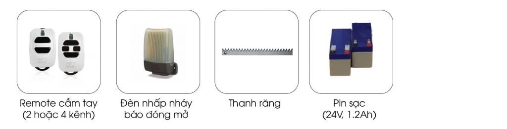 - 01 Hộp điều khiển NET230N/C (đối với bản 230V) hoặc 01 Hộp điều khiển NET24N/C (đối với bản 24V)