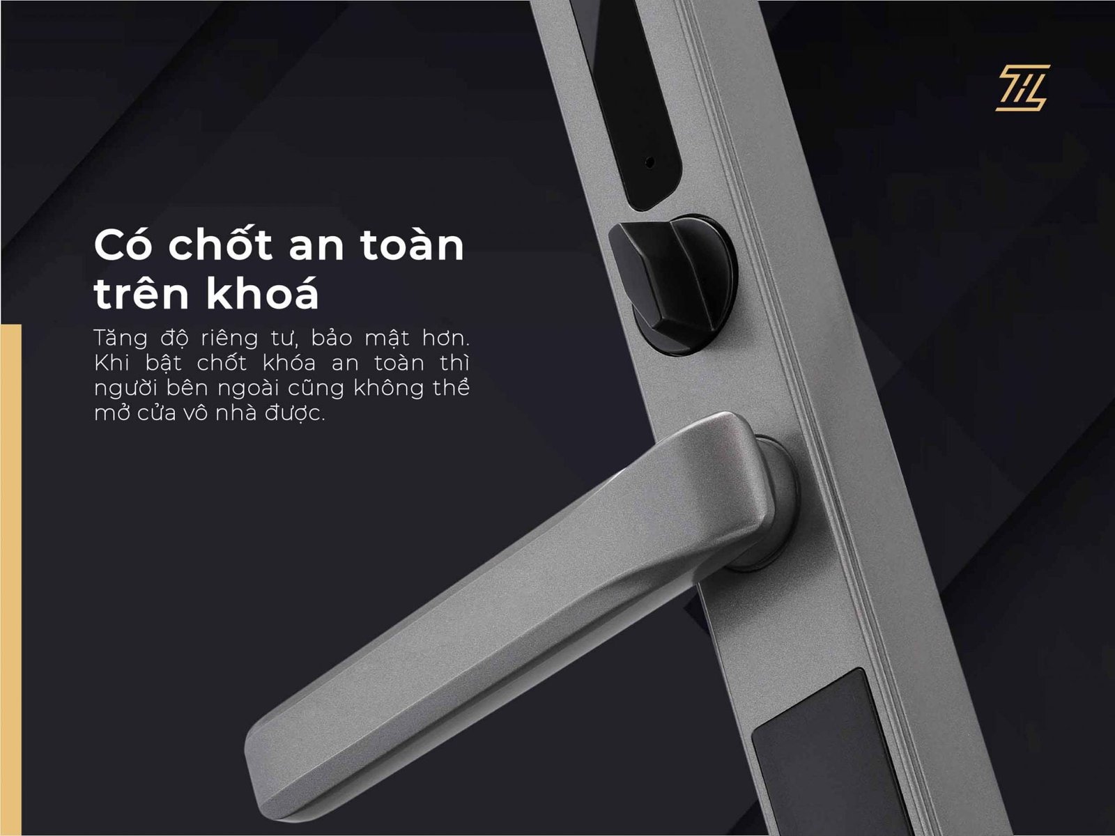 Sự khác biệt ở Khóa cửa thông minh Ticklock I725 so với các dòng khóa cửa nhôm thông thường là có thêm chốt an toàn, tăng độ riêng tư, bảo mật hơn. Khi bật chốt khóa an toàn thì người bên ngoài cũng không thể mở cửa vô nhà được.