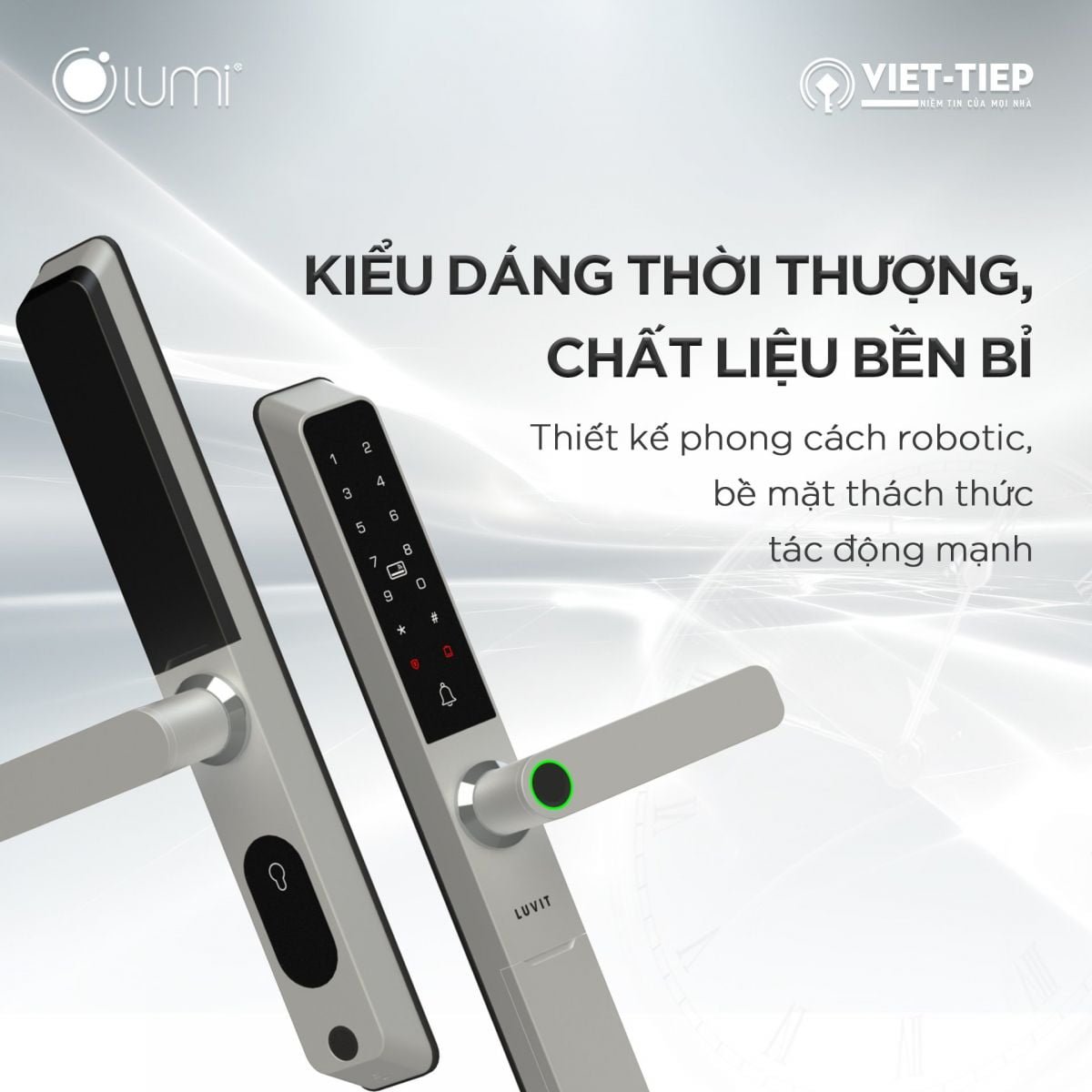 Vượt xa khỏi công năng thiết yếu của một ổ khóa thông thường, LUVIT đáp ứng nhu cầu về tính tiện lợi và thấu hiểu người dùng thời đại số. Với LUVIT, phong cách sống thời thượng đến từ những cái chạm tay, và sự thảnh thơi mở ra từ màn hình app cho phép nắm trọn mọi quyền kiểm soát an ninh cho cả gia đình.